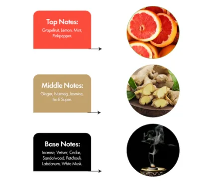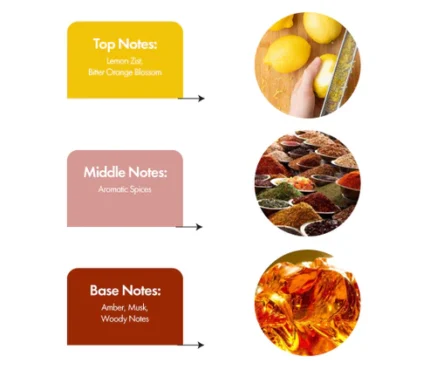 Fragrance Accords: Oriental, Woody, Spicy, Warm, Confident.
