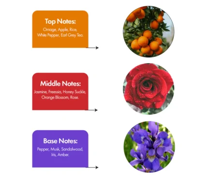 Fragrance Accords: Oriental, Warm Spicy, Citrus, Floral, Gourmand